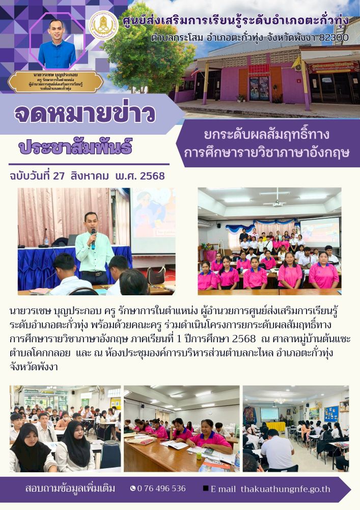 โครงการประชุมบุคลากรเพื่อพัฒนาระบบการประกันคุณภาพภายใน สกร.ระดับอำเภอตะกั่วทุ่ง ประจำปี พ.ศ.2568